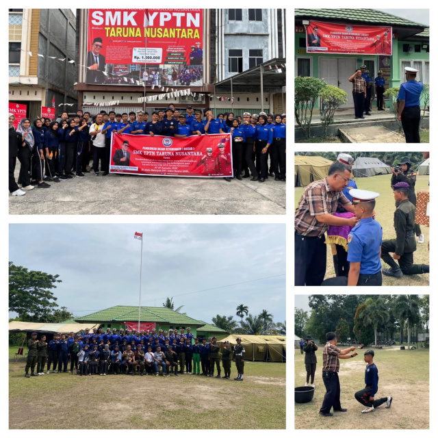 Pekanbaru (Bingkai Riau) - Dalam rangka membentuk karakter serta Menumbuhkan semangat nasionalisme dan kebangsaan para Taruna Taruninya SMK YPTN Taruna Nusantara menggelar Pendidikan dasar(Diksar) ketarunaan serta kenaikan pangkat bagi siswa kelas XI bersama Resimen Mahasiswa